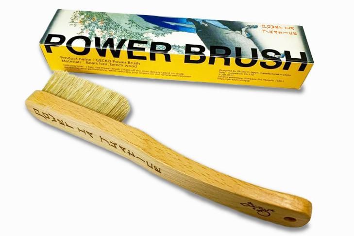 折れるものなら折ってみろと言わんばかりの挑戦的なハンドルと、猪の圧倒的な毛量でホールドに染み付いたチョークの汚れをこれでもかというほどに掻き出してくれる。